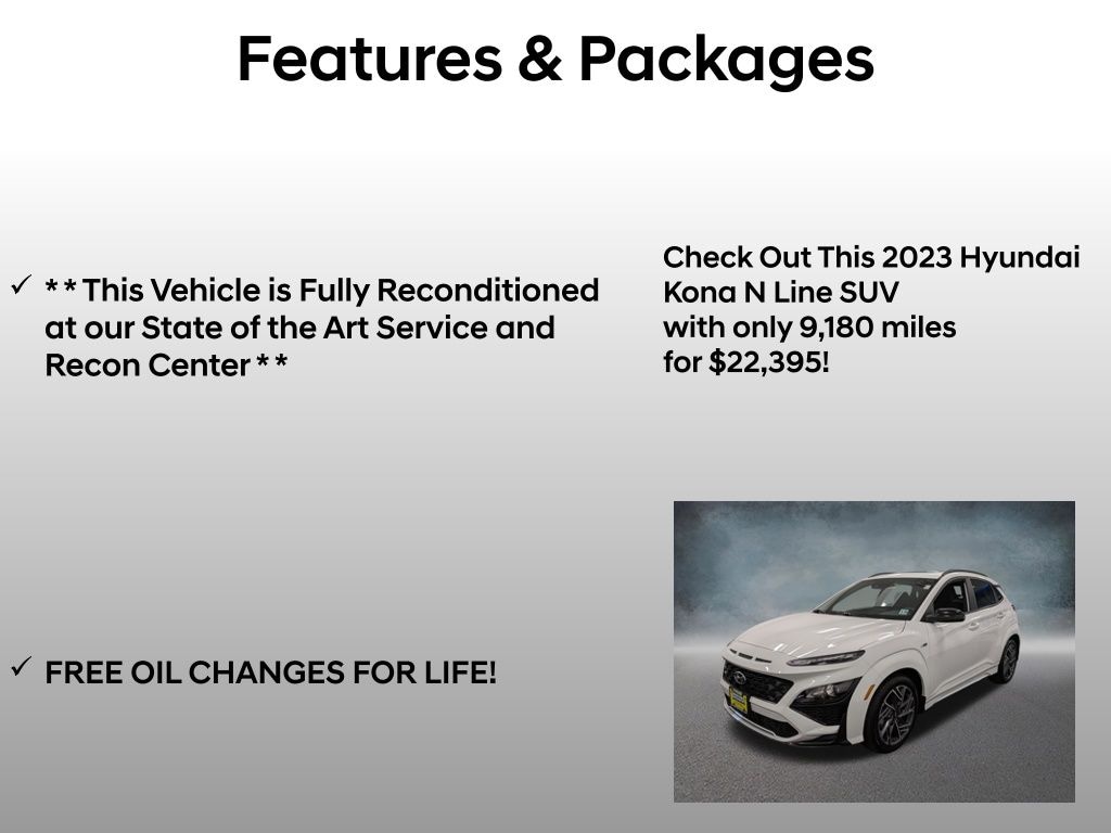 Experience the perfect blend of performance, technology, and style with the 2023 Hyundai Kona N Line. This remarkable SUV is ready to elevate your driving experience and exceed your expectations. Visit our showroom today to take this exceptional vehicle for a test drive and discover why it's the perfect fit for your lifestyle.