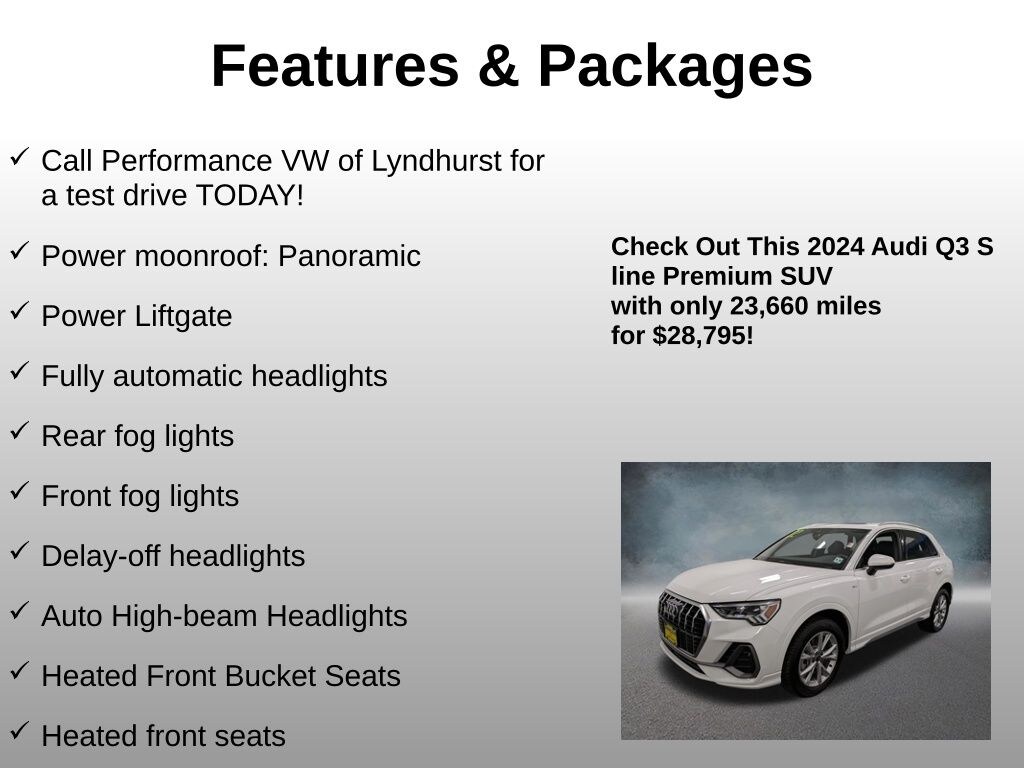 Arkona White 2024 Audi Q3 Premium S Line quattro S Line quattro quattro 8-Speed Automatic with Tiptronic 2.0L 4-Cylinder TFSI