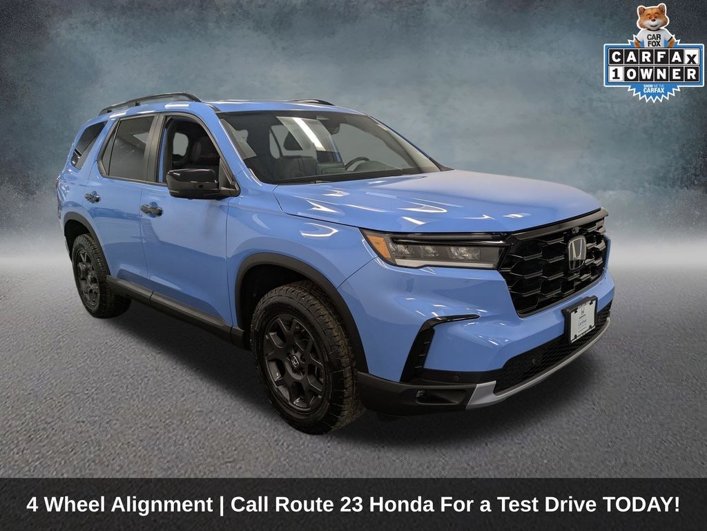 Oil Change, Wiper Blades - Top Off All Fluids, 4 Wheel Alignment, Call Route 23 Honda For a Test Drive TODAY!, AWD, 3rd row seats: split-bench, 4-Wheel Disc Brakes, 9 Speakers, ABS brakes, Adaptive Cruise Control: Adaptive Cruise Control (ACC) with Low-Speed Follow, Air Conditioning, Alloy wheels, AM/FM radio: SiriusXM, Apple CarPlay/Android Auto, Auto High-beam Headlights, Auto-dimming Rear-View mirror, Automatic temperature control, Axle Ratio: 4.167, Blind Spot Information (BSI) System warning, Brake assist, Bumpers: body-color, Delay-off headlights, Driver door bin, Driver vanity mirror, Dual front impact airbags, Dual front side impact airbags, Durable Synthetic Leather Seat Trim, Electronic Stability Control, Emergency communication system: HondaLink Assist, Exterior Parking Camera Rear, Four wheel independent suspension, Front anti-roll bar, Front Bucket Seats, Front Center Armrest, Front dual zone A/C, Front fog lights, Front reading lights, Fully automatic headlights, Garage door transmitter: HomeLink, Heated door mirrors, Heated Front Bucket Seats, Heated front seats, Illuminated entry, Knee airbag, Lane departure: Lane Keeping Assist System (LKAS) active, Low tire pressure warning, Memory seat, Occupant sensing airbag, Outside temperature display, Overhead airbag, Overhead console, Panic alarm, Passenger door bin, Passenger vanity mirror, Power door mirrors, Power driver seat, Power Liftgate, Power moonroof, Power passenger seat, Power steering, Power windows, Radio data system, Radio: 245-Watt Audio System, Rear air conditioning, Rear anti-roll bar, Rear reading lights, Rear window defroster, Rear window wiper, Reclining 3rd row seat, Remote keyless entry, Security system, Speed control, Speed-sensing steering, Speed-Sensitive Wipers, Split folding rear seat, Spoiler, Steering wheel mounted audio controls, Tachometer, Telescoping steering wheel, Tilt steering wheel, Traction control, Trip computer, Turn signal indicator mirrors, Variably intermittent wipers, Wheels: 18" Fully Painted Shark Gray w/Blk Lug Nuts. Clean CARFAX. CARFAX One-Owner.